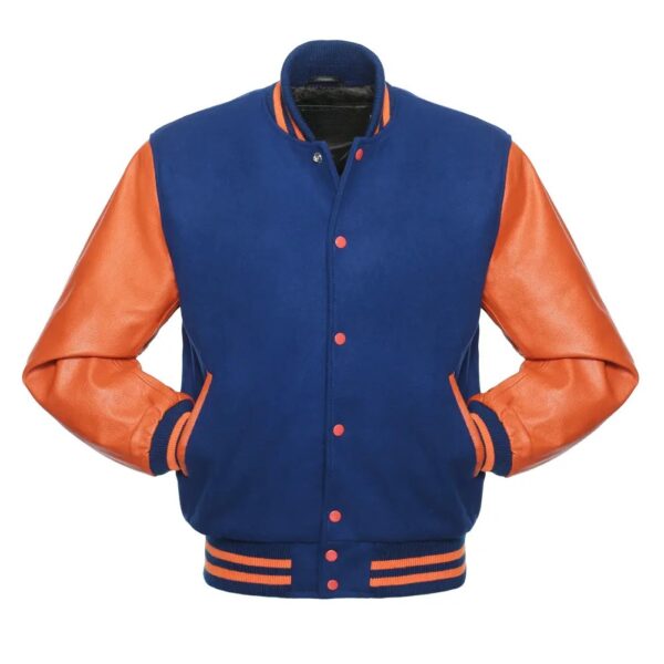 Inspired by the heritage of American varsity culture, this jacket represents confidence, achievement, and individuality. Once worn proudly by athletes and scholars, the varsity jacket has evolved into a global fashion essential. The Royal Wool/Orange Leather Varsity Jacket captures that spirit perfect for anyone who values both tradition and trend.